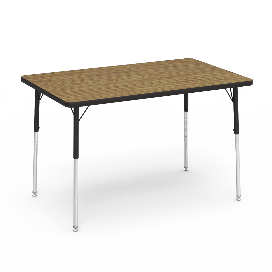 Commercial-grade Virco 4000 Series rectangular activity table (30″ x 48″) with high-pressure laminate surface over a 1-1/8″ particleboard core and tubular steel legs. Designed for classrooms, dining, commons, and conference spaces. Multiple leg height configurations available; BIFMA, GREENGUARD, and CPSIA certified.